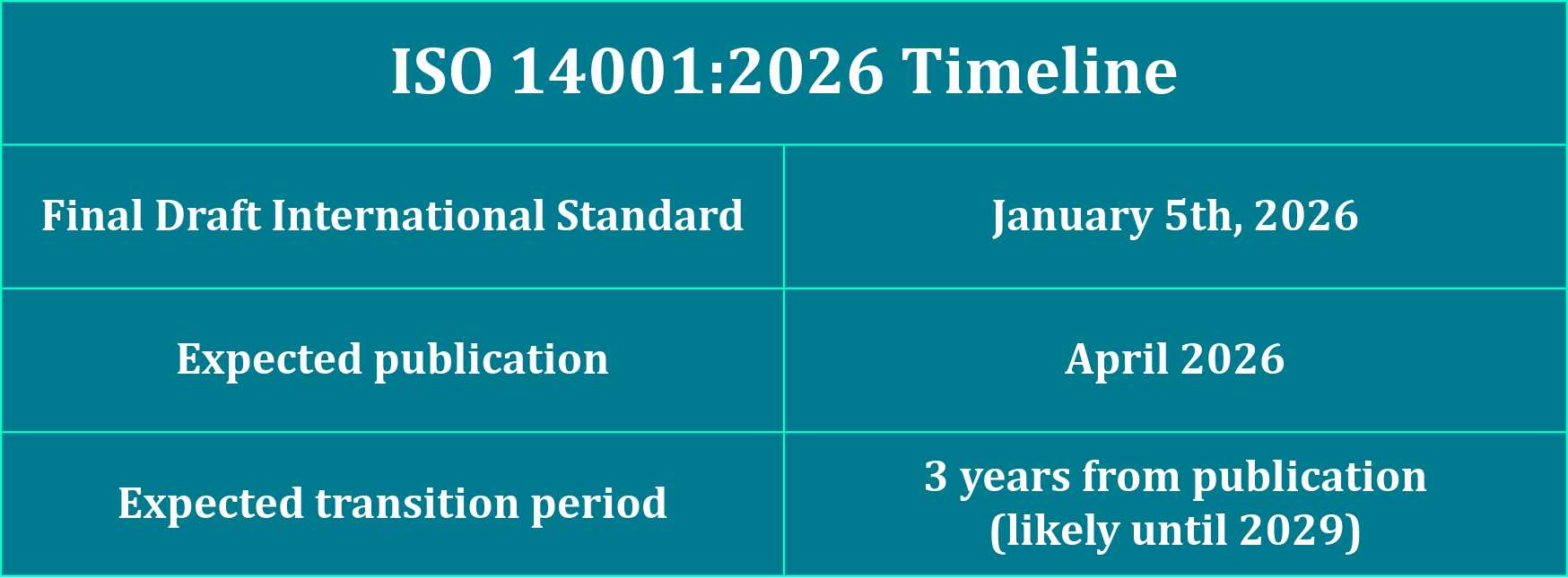 The Final Draft International Standard (FDIS) for ISO 14001:2026 was released on January 5, 2026 confirming the technical content of the revised standard and providing organizations with early clarity on what the updated requirements will entail. This means the expectations are now effectively set, and organization can begin preparations with confidence ahead of formal publication