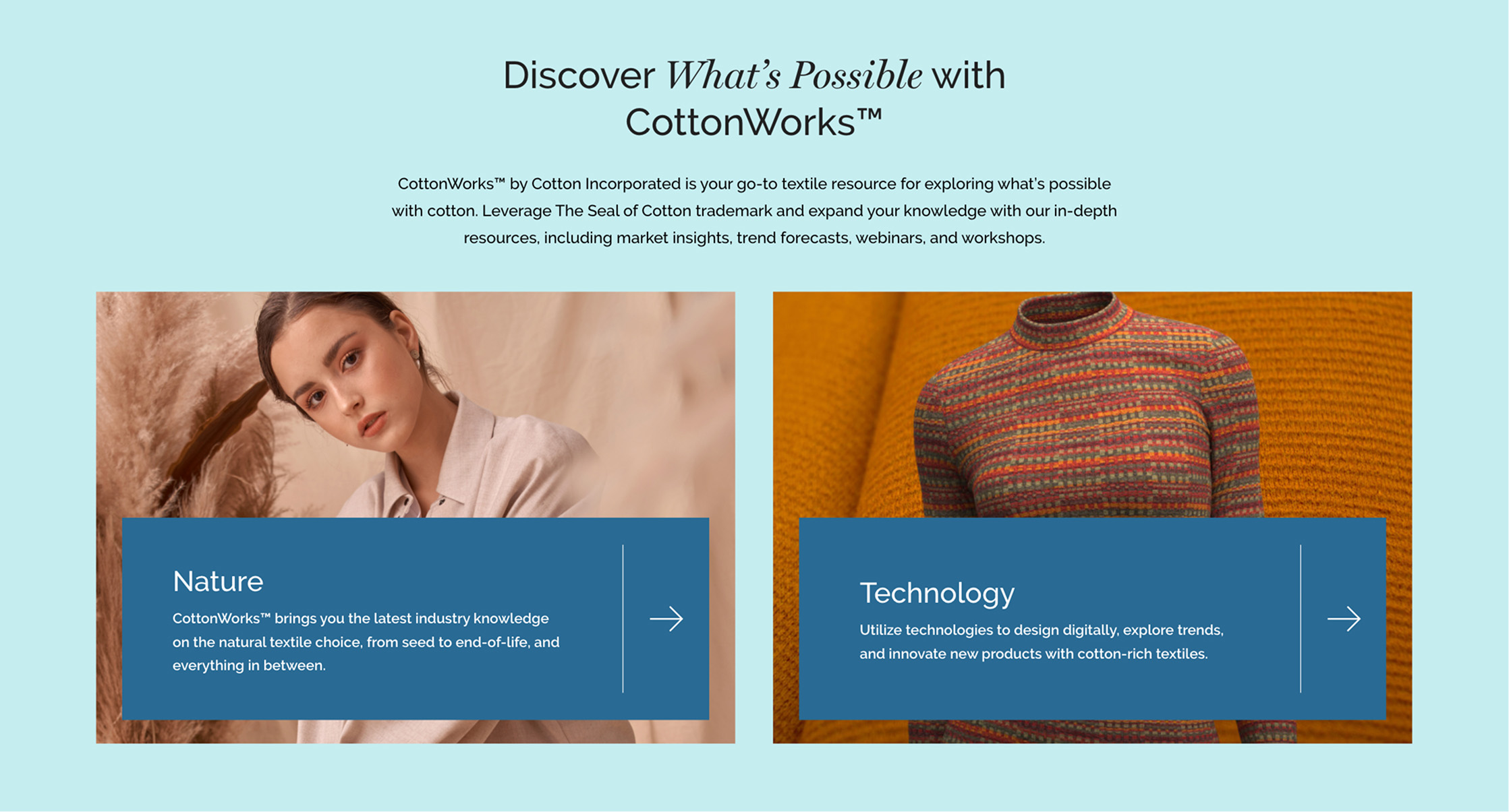CottonWorks™, the educational arm of Cotton Incorporated, helps textile professionals learn about the benefits of cotton. New ways that cotton can look, feel and function are emerging, and their website needs to be up to date to represent cotton as the best choice for modern textile applications for users, designers and producers. So, our cotton-loving team put on their favorite denim jeans and comfy cotton t-shirts, and set to work.